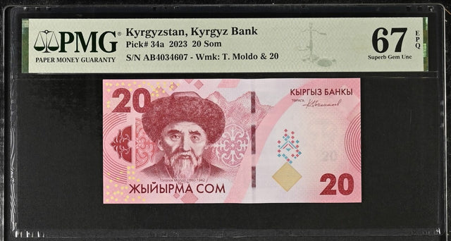 Kyrgyzstan 20 Som 2023 P 34 a Superb GEM UNC PMG 67 EPQ