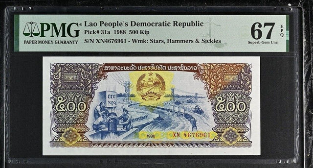 Lao Laos 500 Kip 1988 P 31 a Superb Gem UNC PMG 67 EPQ