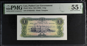 Laos 1 Kip ND 1968 P 19Aa About UNC PMG 55 EPQ