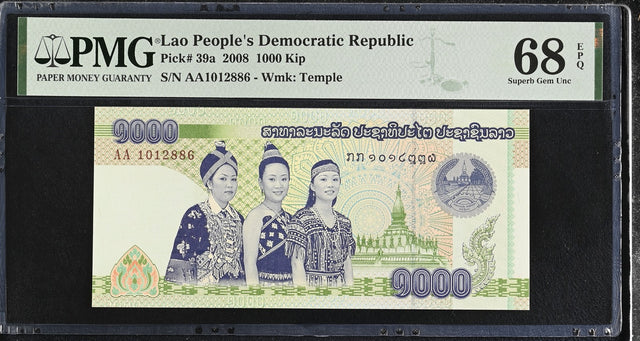Laos 1000 Kip 2008 P 39 a Superb Gem UNC PMG 68 EPQ TOP POP