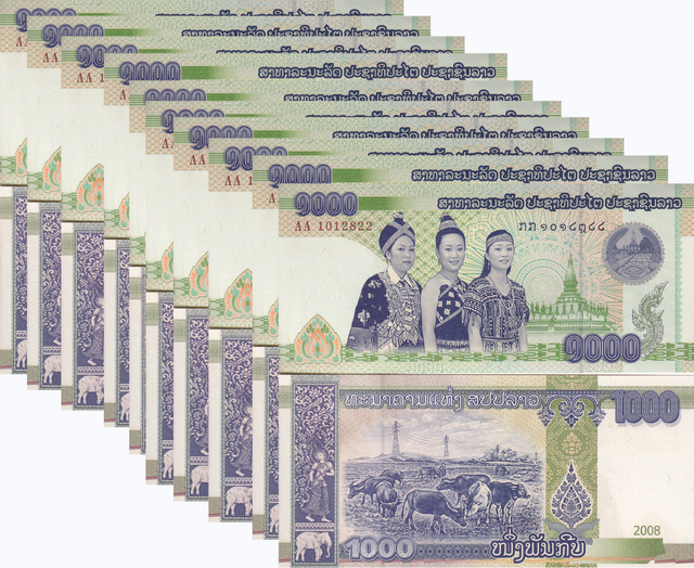 Laos 1000 Kip 2008 Pha That Luang pagoda (Vientiane) P 39 UNC LOT 10 PCS