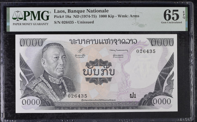 Laos 1000 Kip ND 1974-75 P 18 a Gem UNC PMG 65 EPQ