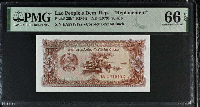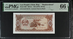 Laos 20 Kip ND 1979 P 28 b* Replacement Correct Gem UNC PMG 66 EPQ