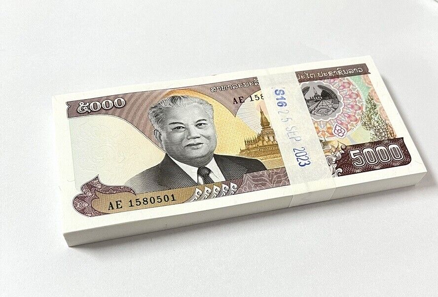 Laos 5000 Kip 2020 / 2022 P 41Aa LOT 100 UNC 1 Bundle