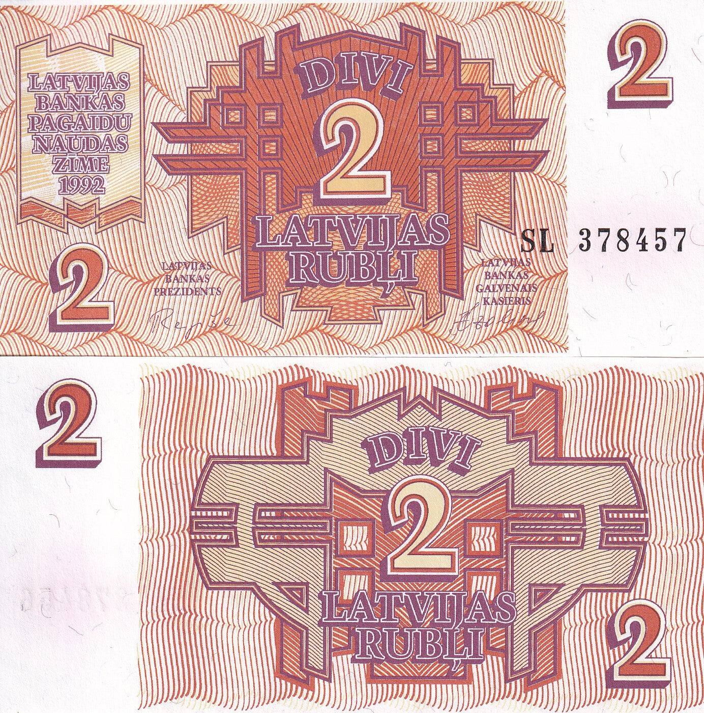 Latvia 2 Rublu 1992 P 36 UNC