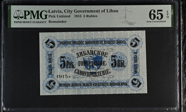 Latvia 5 Rubel 1915 Occupation P Unlisted Gem UNC PMG 65 EPQ