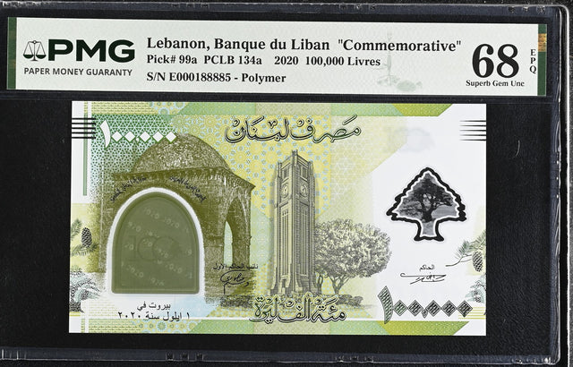 Lebanon 100000 Livres 2020 P 99 Polymer Commemorative Superb Gem UNC PMG 68 EPQ