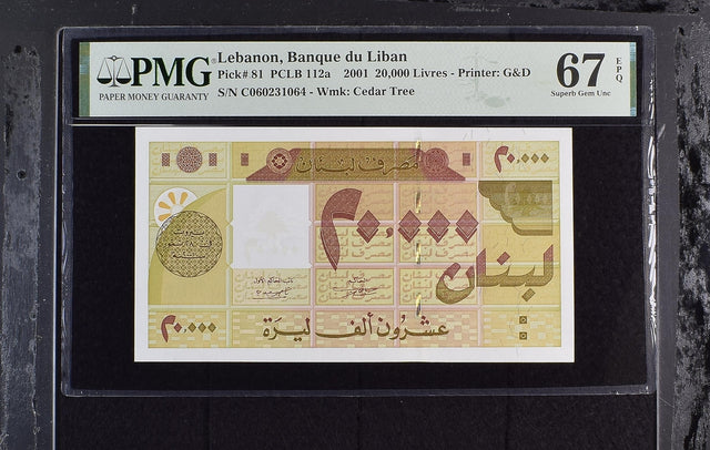 Lebanon 20000 Livres 2001 P 81 Superb Gem UNC PMG 67 EPQ