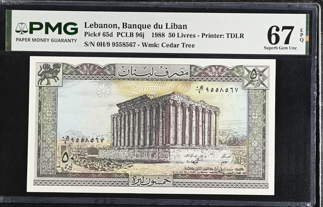 Lebanon 50 Livres 1988 P 65 d Superb Gem UNC PMG 67 EPQ