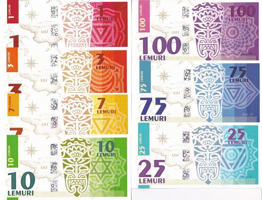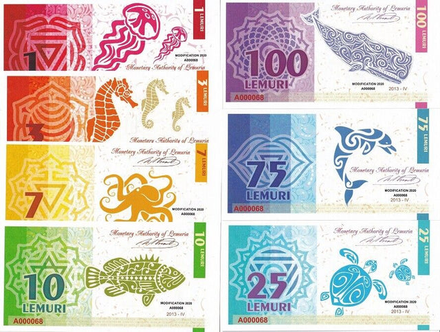 Lemuria Set 7 1 3 7 10 25 75 100 Lemuri 2013 /2020 polymer Fantasy Indian Ocean