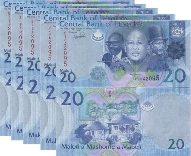 Lesotho 20 Maloti 2019 P 22 c UNC LOT 5 PCS