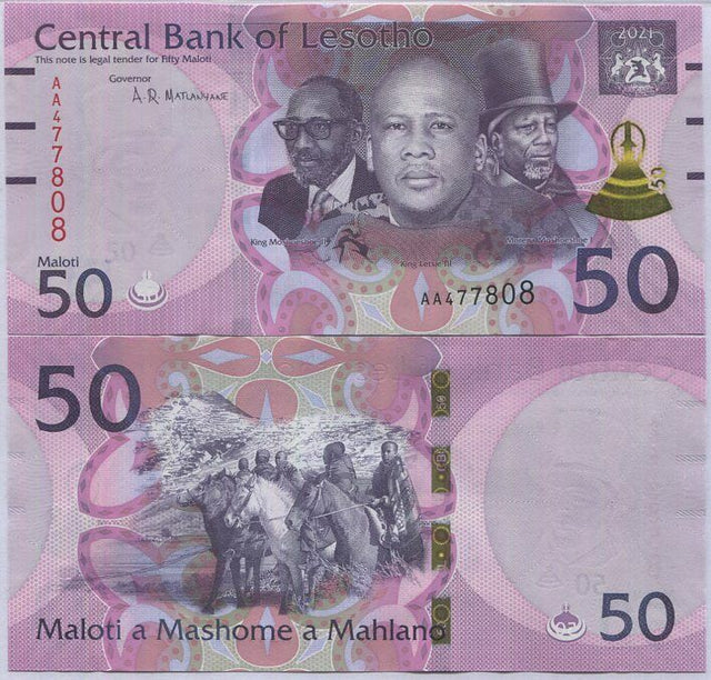 Lesotho 50 Maloti 2021 P 28 New Symbol + Sign UNC
