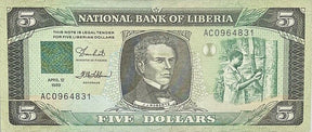 LIBERIA 5 DOLLARS 1989 P 19 XF