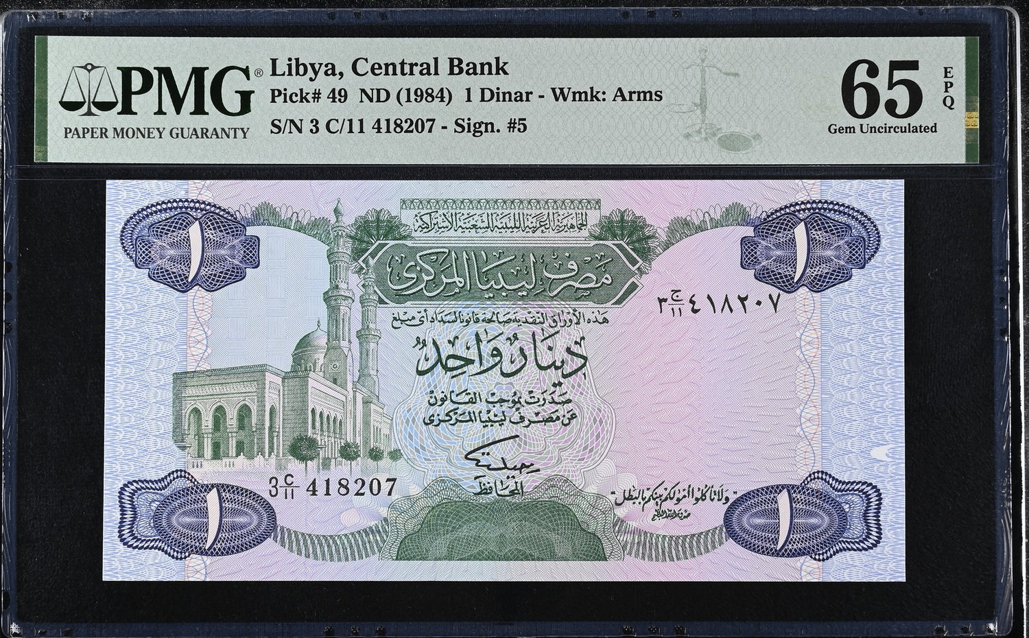 Libya 1 Dinar ND 1984 P 49 Gem UNC PMG 65 EPQ