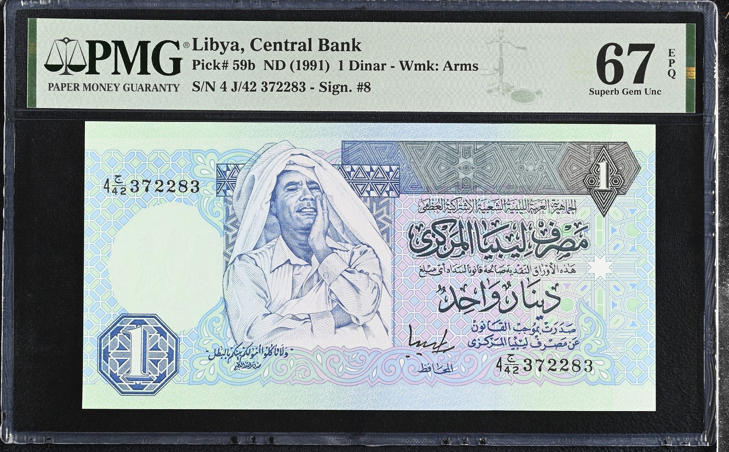 Libya 1 Dinar ND 1991 P 59 b Superb Gem UNC PMG 67 EPQ