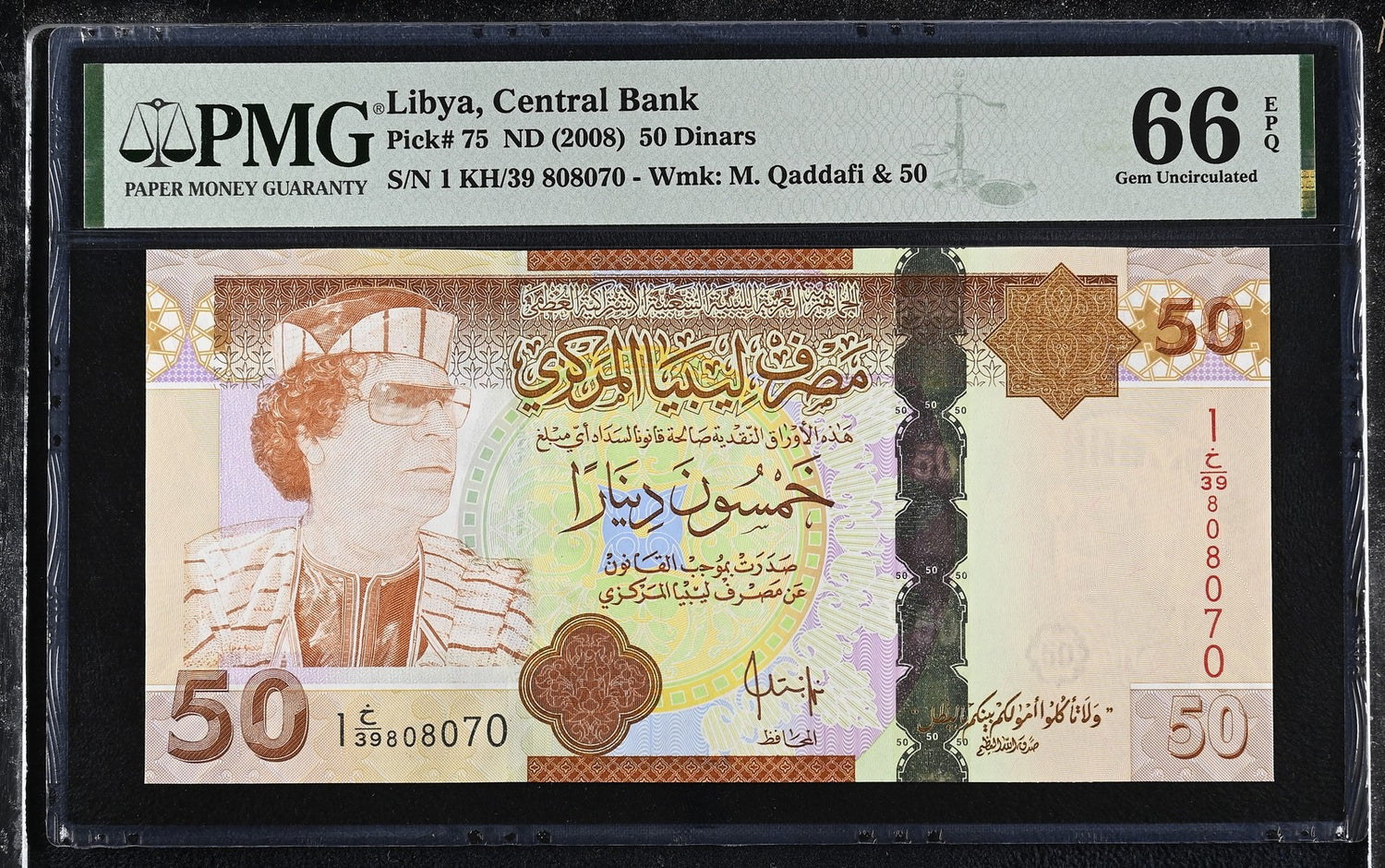 Libya 50 Dinars ND 2008 P 75 Gem UNC PMG 66 EPQ