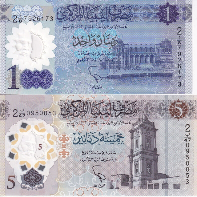 Libya Set 2 Pcs 1 5 Dinar 2019 2021 P 85 P 86 Polymer UNC