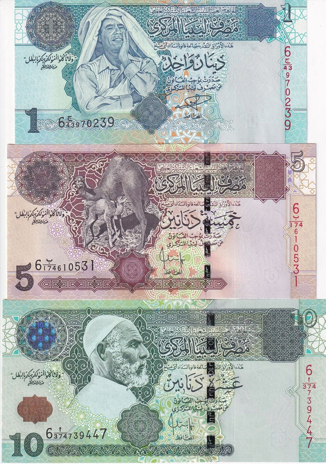 Libya Set 3 Pcs 1 5 10 Dinar 2004 P 68 P 69 P 70 UNC
