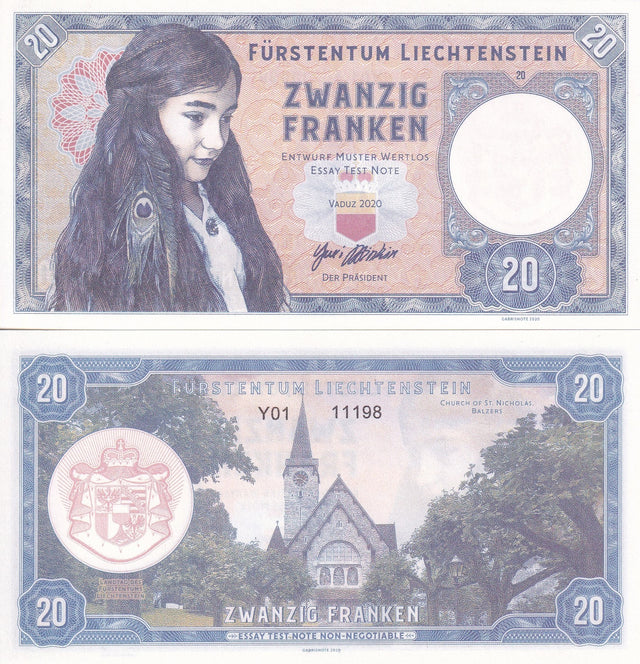 Liechtenstein 20 Francs 2020 Private issue Test Note Zwanzig Franken