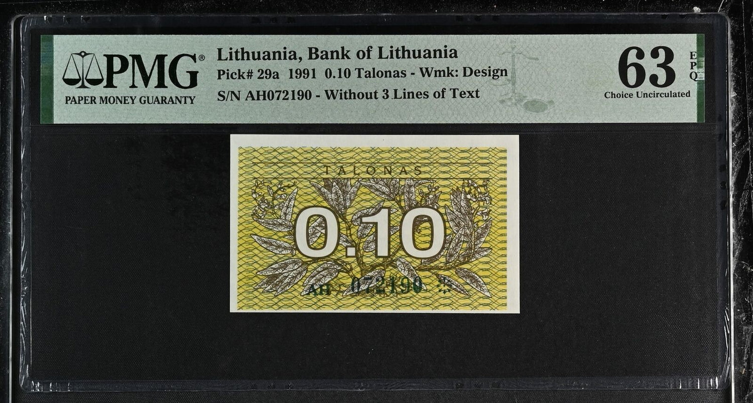 LITHUANIA 0.1 TOLONAS 1991 P 29 a Choice UNC PMG 63 EPQ