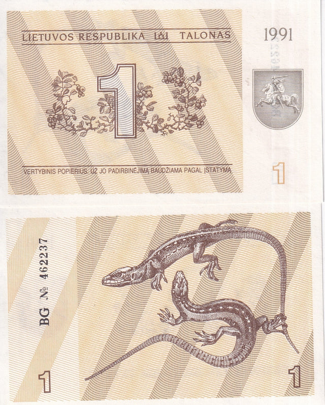 Lithuania 1 Talonas 1991 P 32 b WITH TEXT UNC