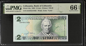 Lithuania 2 Litai 1993 P 54 a Gem UNC PMG 66 EPQ