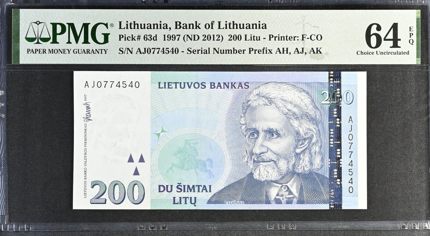 Lithuania 200 Litu 1997 P 63 d Choice UNC PMG 64 EPQ
