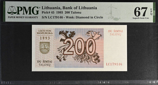 Lithuania 200 Talonu 1993 P 45 Superb Gem UNC PMG 67 EPQ
