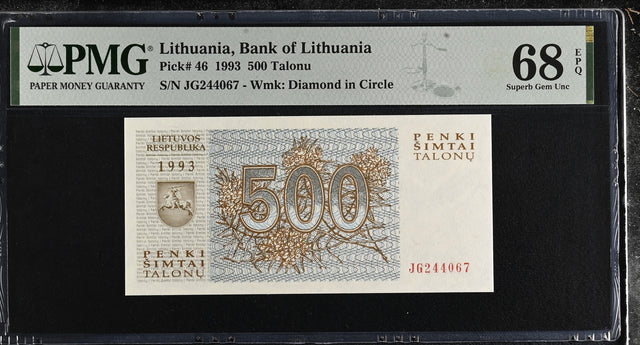 Lithuania 500 Talonu 1993 P 46 Superb Gem UNC PMG 68 EPQ