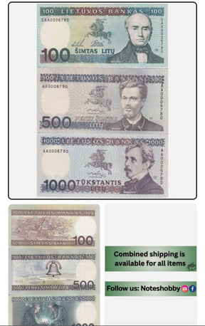 Lithuania Set 3 UNC 100 500 1000 Litu 1991 1994 P 50 51 52 Matching Number