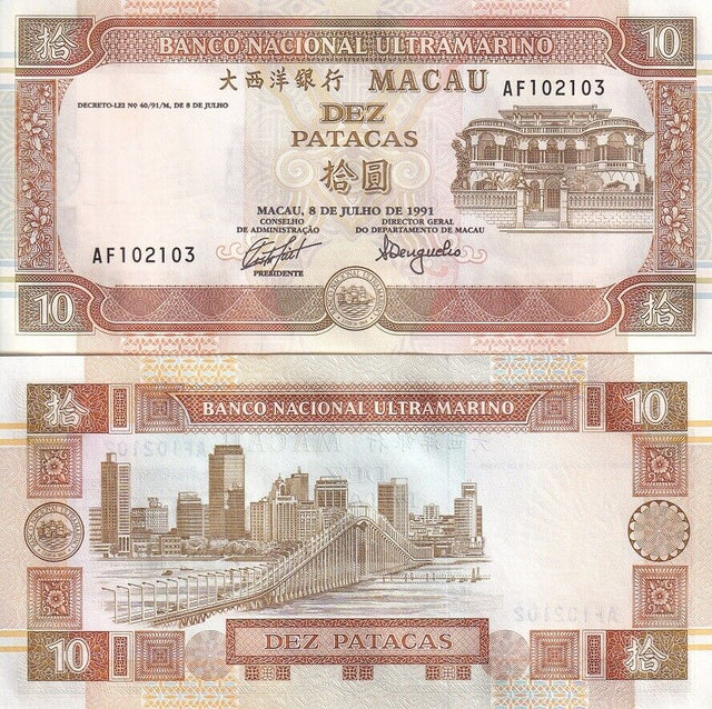 Macau 10 Patacas 1991 P 65 BNU AUnc
