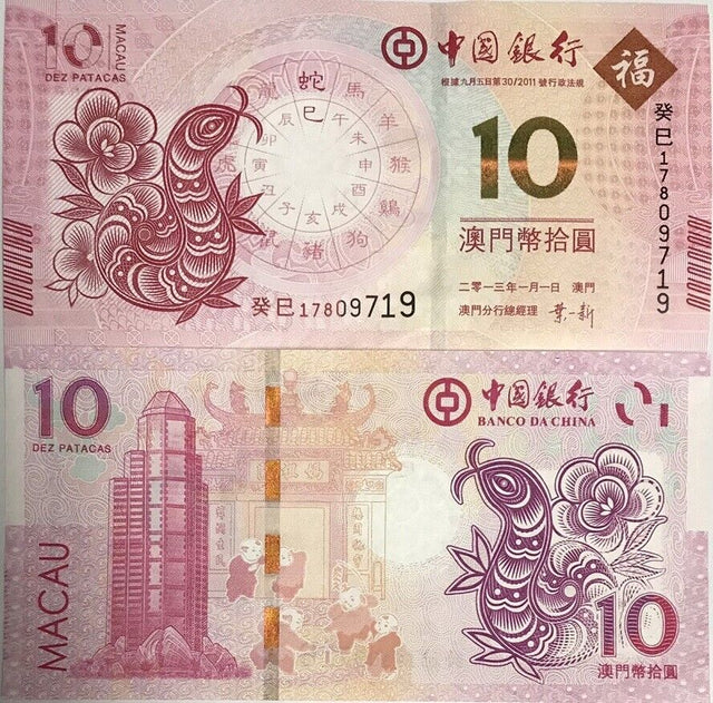 Macau 10 Patacas 2013 P 116 Snake BOC UNC