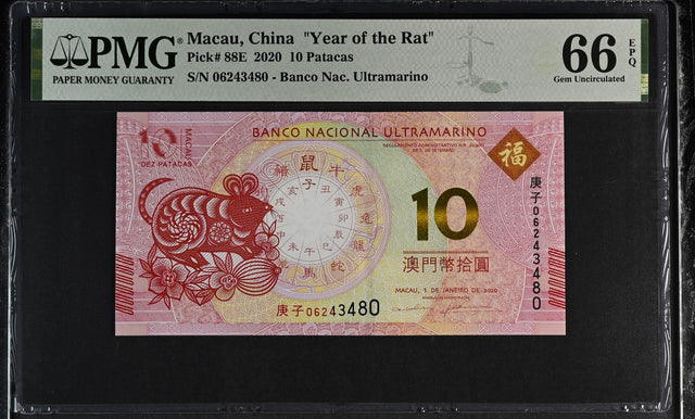 Macau 10 Patacas 2020 P 88E Mouse BNU Commemorative Gem UNC PMG 66 EPQ