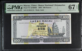 Macau 100 Patacas 2003 P 78 Superb Gem UNC PMG 67 EPQ