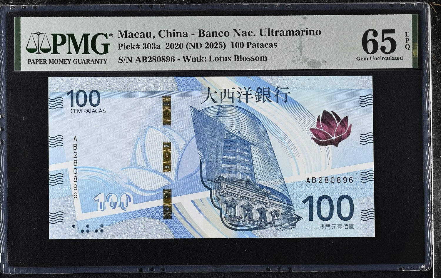 Macau 100 Patacas 2020 ND 2025 BOC P 303 a Gem UNC PMG 65 EPQ