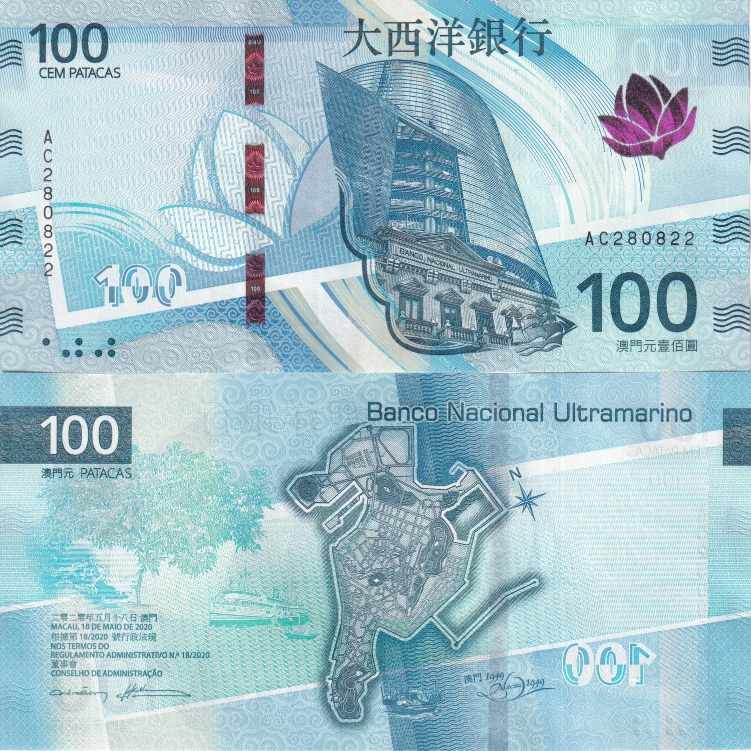 Macau 100 Patacas 2025 BNU Bank Building P 92 UNC