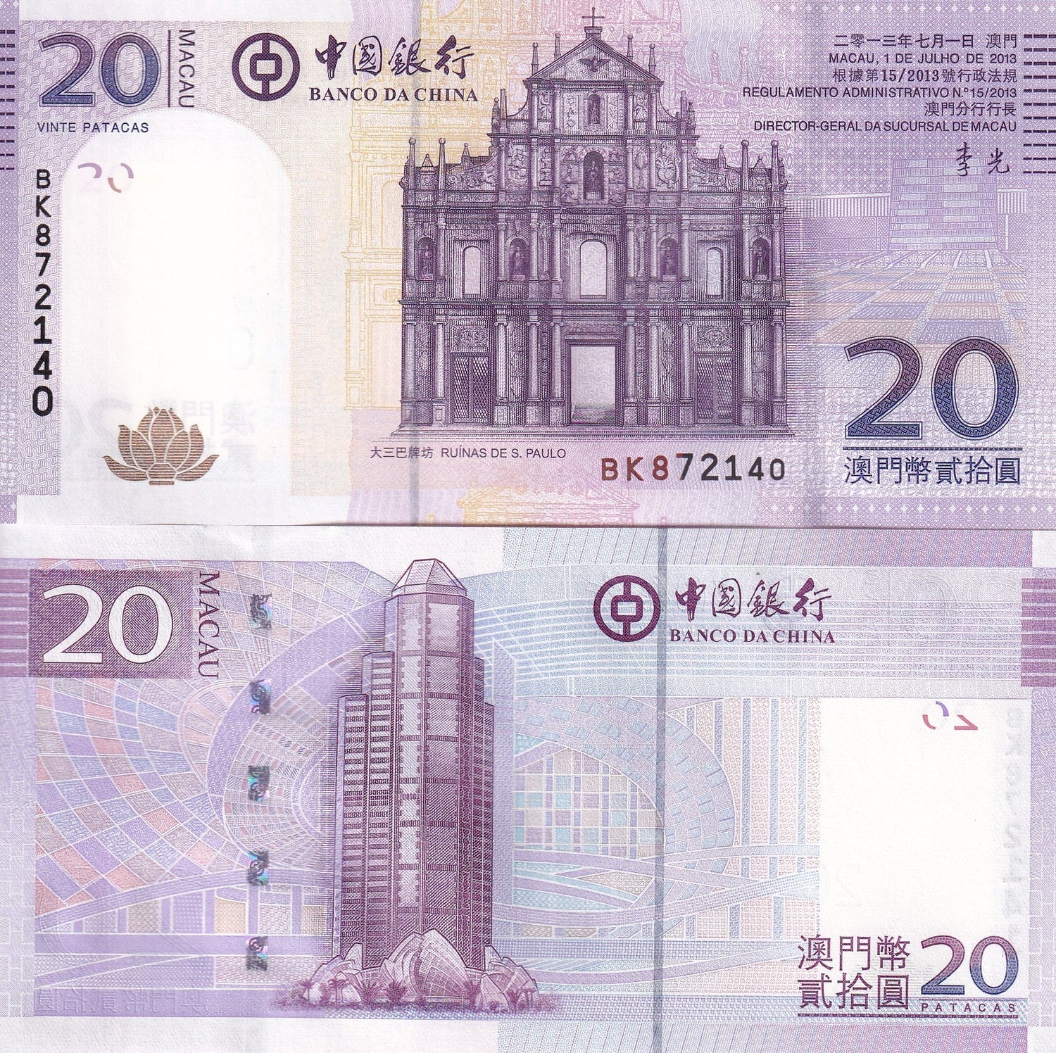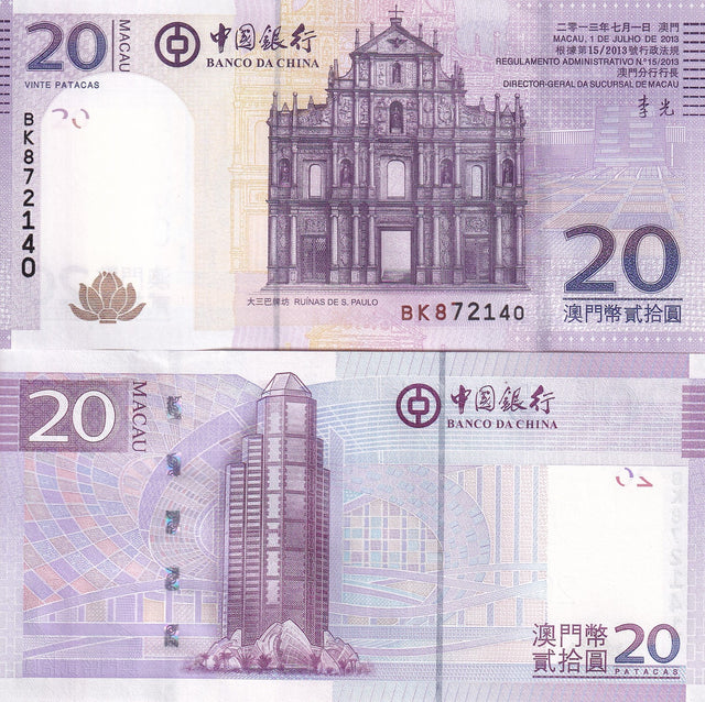 Macau 20 Patacas 2013 P 109 b BOC Sign 2 UNC
