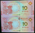 Macau Macao Set 2 Pcs 10 Patacas 2015/2014 P 88 118 Year of Goat BOC & BNU UNC