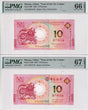 Macau Set 2; 10 Patacas 2021 P88F P122B OX BNU BOC Superb Gem UNC PMG 66 67 EPQ