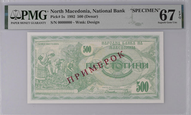 Macedonia 500 Denar 1992 P 5 s SPECIMEN Superb GEM UNC PMG 67 EPQ Top Pop