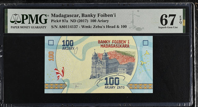 Madagascar 100 Ariary ND 2017 P 97 a Superb Gem UNC PMG 67 EPQ