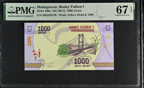 Madagascar 1000 Ariary ND 2017 P 100 a Superb Gem UNC PMG 67 EPQ