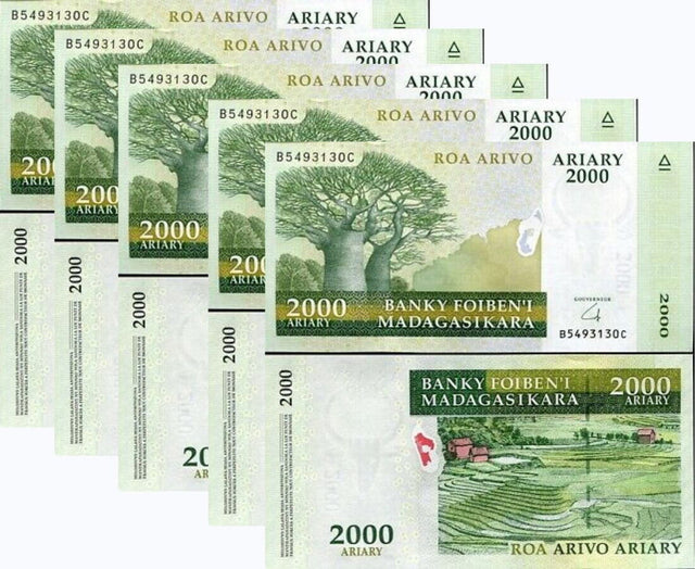 Madagascar 2000 Ariary ND 2009 P 90 b UNC LOT 5 PCS