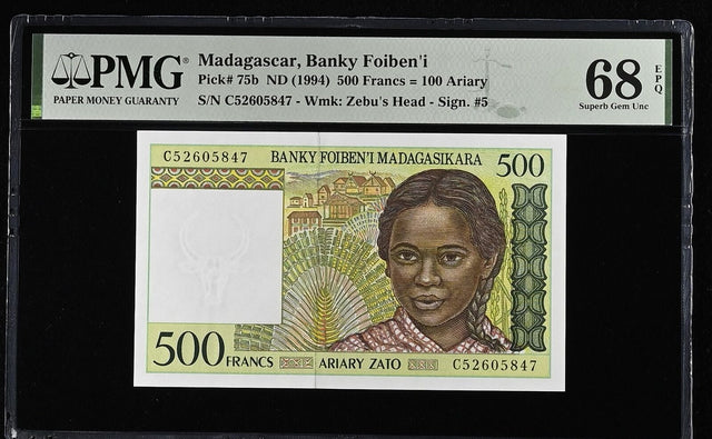 Madagascar 500 Francs ND 1994 P 75 b Superb Gem UNC PMG 68 EPQ