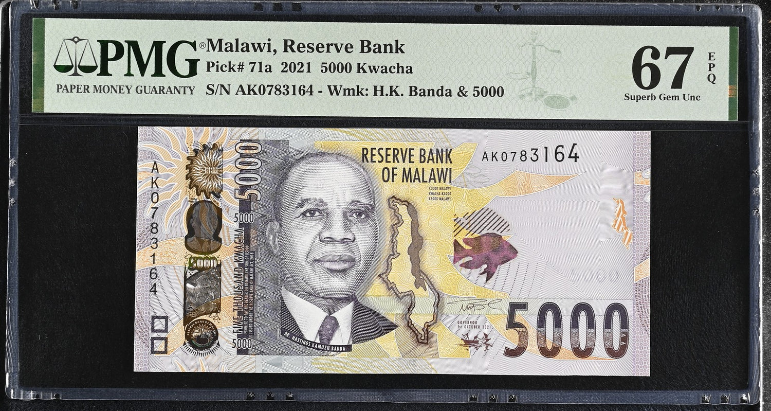 Malawi 5000 Kwacha 2021 P 71 a Superb Gem UNC PMG 67 EPQ