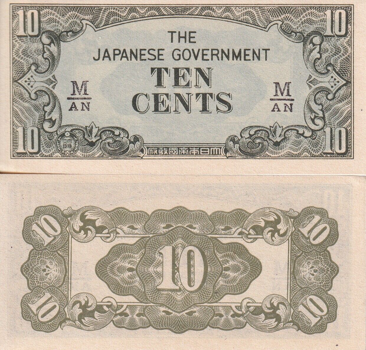 Malaya Japanese Occupation 10 Cent ND 1942 P M3b UNC