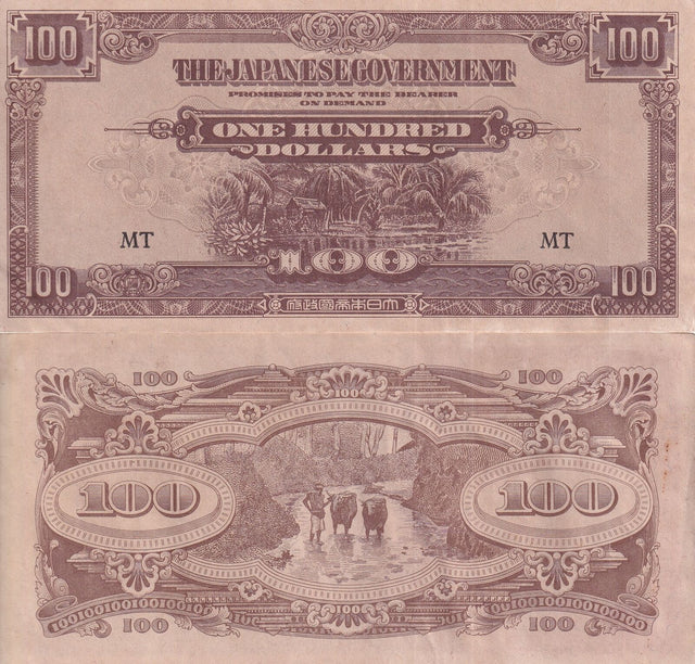 Malaya Japanese Occupation 100 Dollars ND 1944 P M8 XF/AU Little Tone