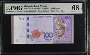 Malaysia 100 Ringgit ND 2012 P 56 a AA Prefix Superb Gem UNC PMG 68 EPQ