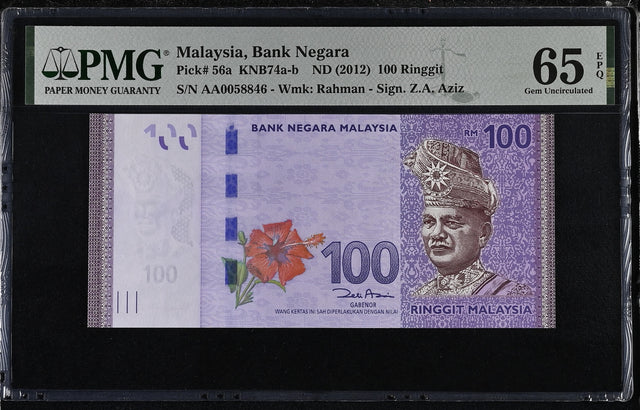 Malaysia 100 Ringgit ND 2012 P 56 a Gem UNC PMG 65 EPQ