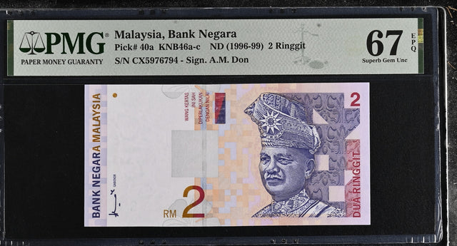 Malaysia 2 Ringgit ND 1996-1999 P 40 a Superb Gem UNC PMG 67 EPQ